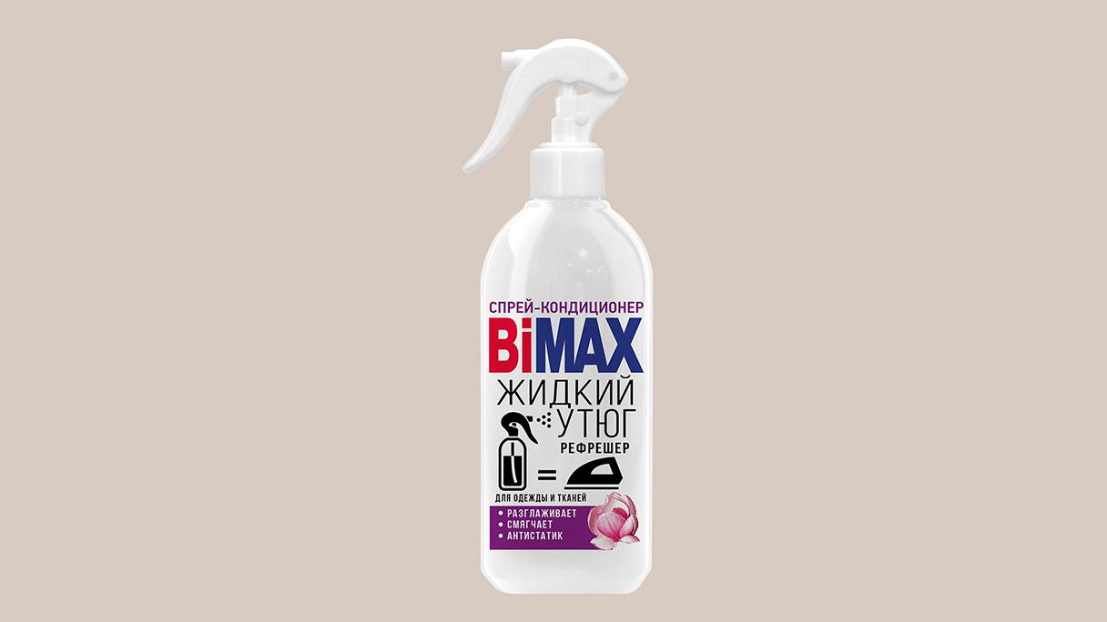 Спрей-кондиционер «BiMAX Жидкий утюг» предназначен для бережного разглаживания ткани без помощи утюга.