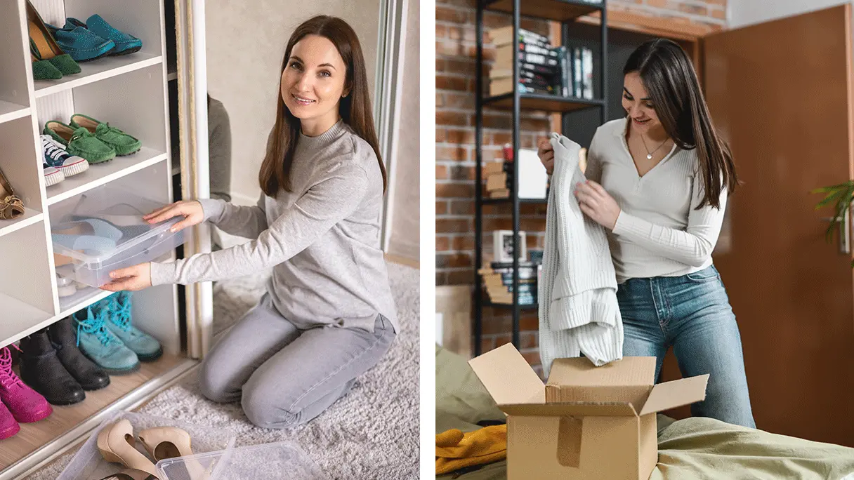 Первый шаг для организации хранения одежды и обуви — осмотр и сортировка. Что-то нуждается в стирке или химчистке, что-то необходимо отнести в ателье или к обувщику. Какие-то вещи уже потеряли былой лоск и с ними пора расстаться, отправив на утилизацию.