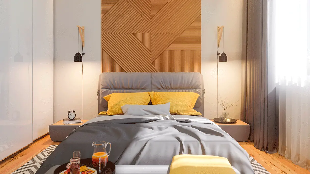 В спальне удобно использовать светильники с диммером — это поможет регулировать интенсивность света. Можно настроить включение и выключение света по таймеру, чтобы плавно засыпать и просыпаться.